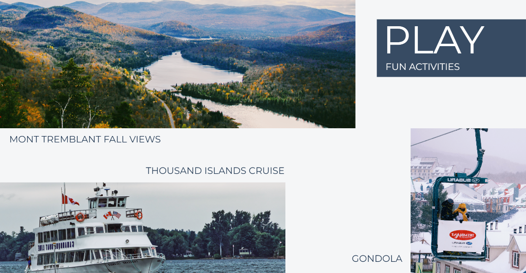 游览蒙特利尔, 渥太华, 魁北克, 翠湖山庄, 千岛(加拿大)。